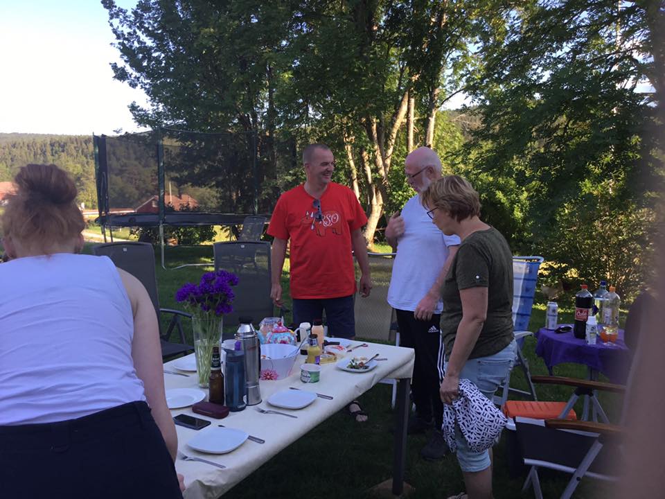 Wij eten iets en rijden dan naar Eli en Anne in Tynset. Daar kunnen we ook lekker in de schaduw zitten, drinken we koffie en thee met wat lekkers erbij en brengen we elkaar op hoogte van wat er allemaal is gebeurd. Tegen half zeven zijn we weer thuis en eten we wat samen.