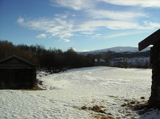 We besloten om toch maar door te rijden naar Tynset. De weg was nu om te doen en je weet nooit hoe het later in de week is. De voorraad honden- en kattenvoer is nu weer op peil en ook hebben we snoepjes gekocht voor a.s. zaterdag: de julemesse. Ook heeft Peter nu nieuwe laarzen, na twee en half jaar waren de oude aan vernieuwing toe.